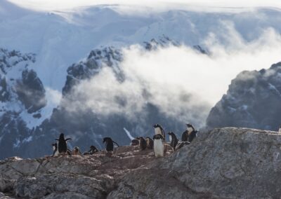 We venture west along the Antarctic Peninsula into the Gerlache Strait region, exploring a variety of sites highlighting the area’s staggering natural beauty. Iconic experiences await on our twice-daily excursions. From Zodiac cruises into Paradise Bay to witnessing penguins nesting on Cuverville Island, each potential stop promises awe-inspiring encounters. We’ll explore historic huts at Damoy Point, keep an eye out for humpback whales in Wilhelmina Bay, and continue south until we reach the crown jewel of this expedition, the jaw-dropping scenery through the Lemaire Channel. Weather permitting, we’ll cross the Antarctic Circle at 66°33’S, an achievement that will put you in rare company.
