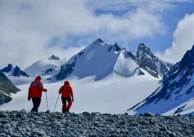 Over time, the volcanic activity of the South Shetland Islands has created a geology unlike any other. Here, you can expect a rugged display of mountains, glaciers, and wildlife returning to their busy daily activity after the long winter break. Chinstrap and Gentoo penguins will be a common sight, and it’s not uncommon to share the water’s edge with Elephant and Fur seals. Whales are often spotted as well. So, we’ll settle into our Zodiacs and spend most of our day exploring, perhaps stopping for a walk along the black sands of Deception Island. Whether on land or sea, in a Zodiac or kayak, be prepared for a fully immersive introduction to this incomparable part of the world.