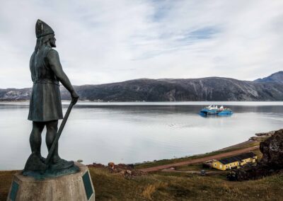 Next, we cruise through Tunulliarfik Fjord to Qassiarsuk, a lush village known for sheep farming and its rich Norse history. Founded in 1924, the modern village sits on the site of Erik the Red’s 10th-century farm, Brattahlíð. Legend has it that his wife Thjodhild refused to join her pagan husband’s bed until he built her a church – the first in the Americas. In the afternoon, we hike from nearby Itilleq through lush green fields to Igaliku and the ruins of Garðar, the seat of Norse Greenlandic power.