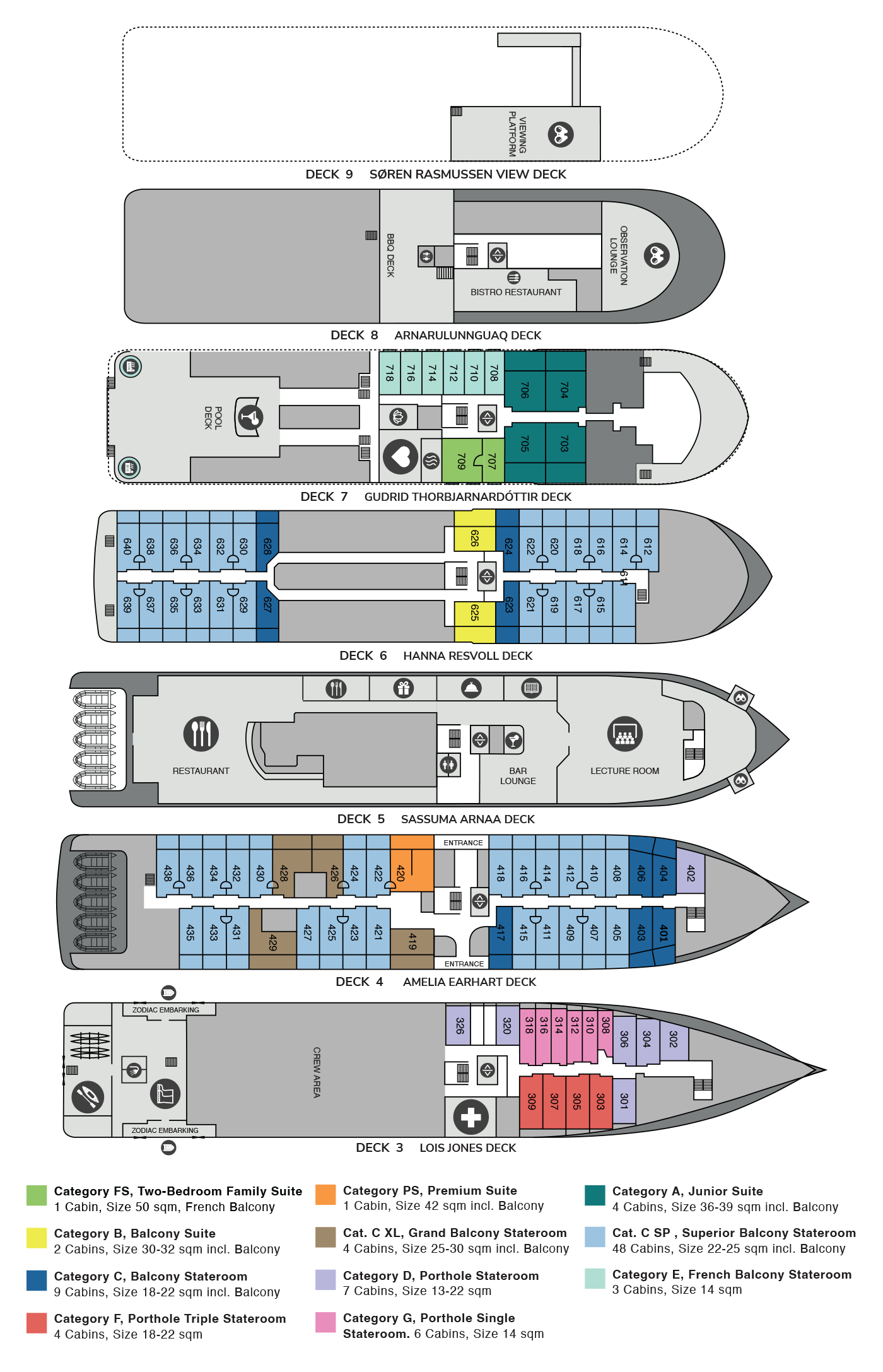Click here to see an updated deck plan for 2027 expeditions onward